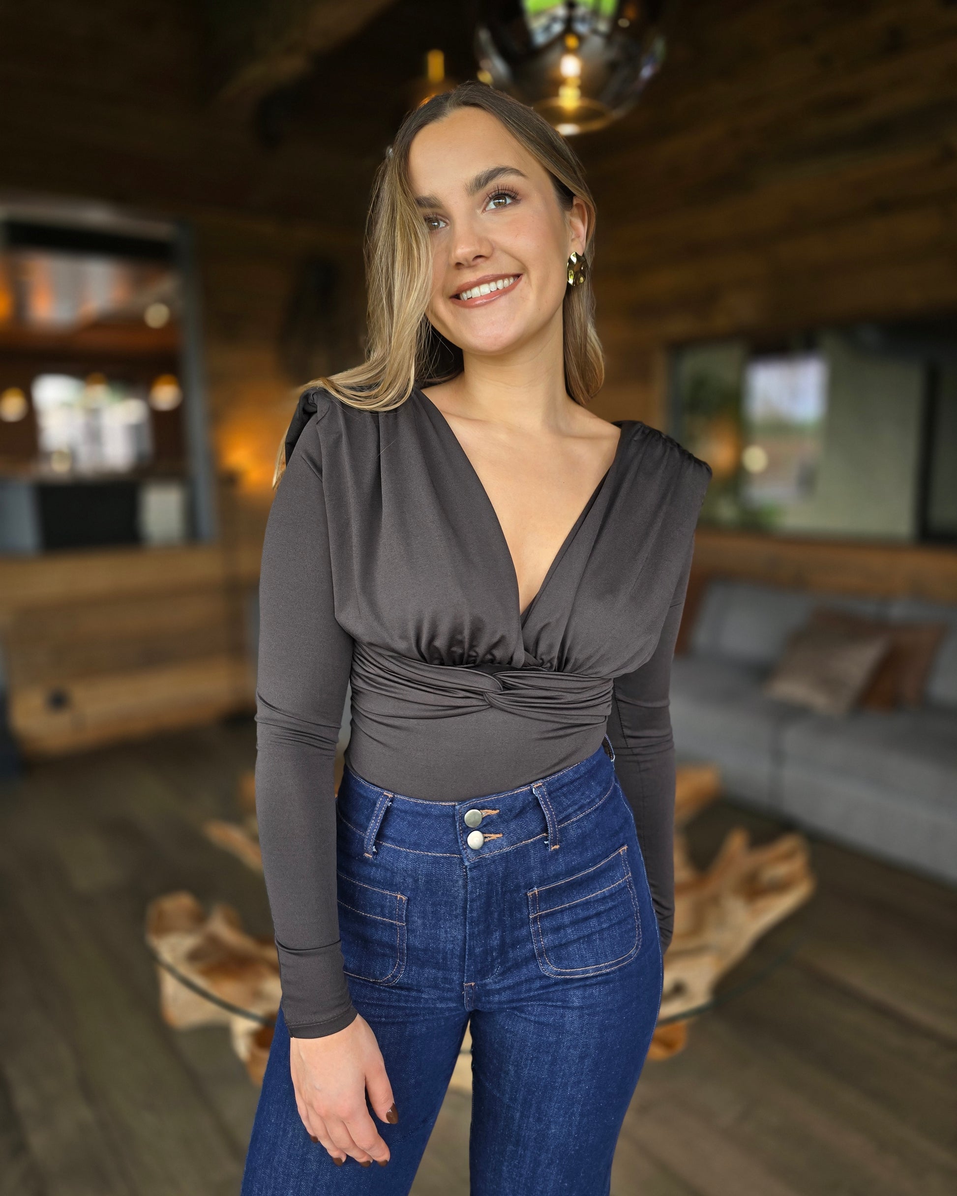 Pièce féminine et sculptante, la blouse VIOLETTA joue sur un drapé maîtrisé qui met en valeur la taille et le décolleté. Ses épaulettes apportent une allure moderne et affirmée, tandis que sa matière extensible épouse la silhouette avec élégance.