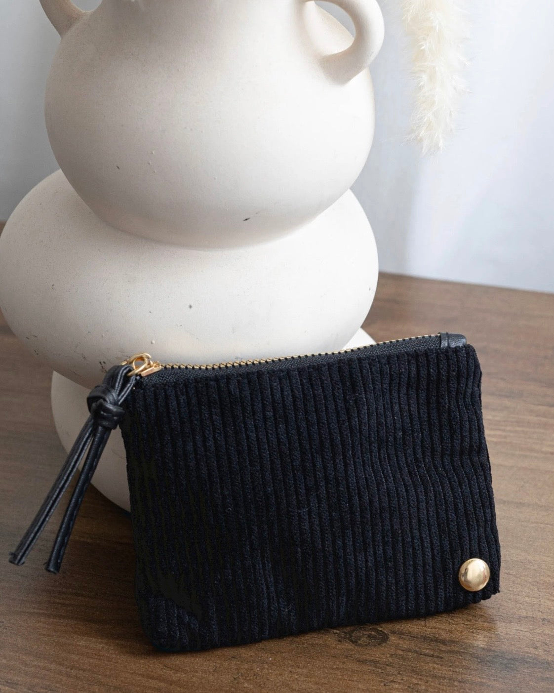 Le porte-feuille en velours côtelé, un accessoire doux, pratique et élégant qui accompagne parfaitement vos journées. Son format compact permet de le glisser facilement dans un sac, une poche ou une pochette, tout en gardant vos essentiels à portée de main.