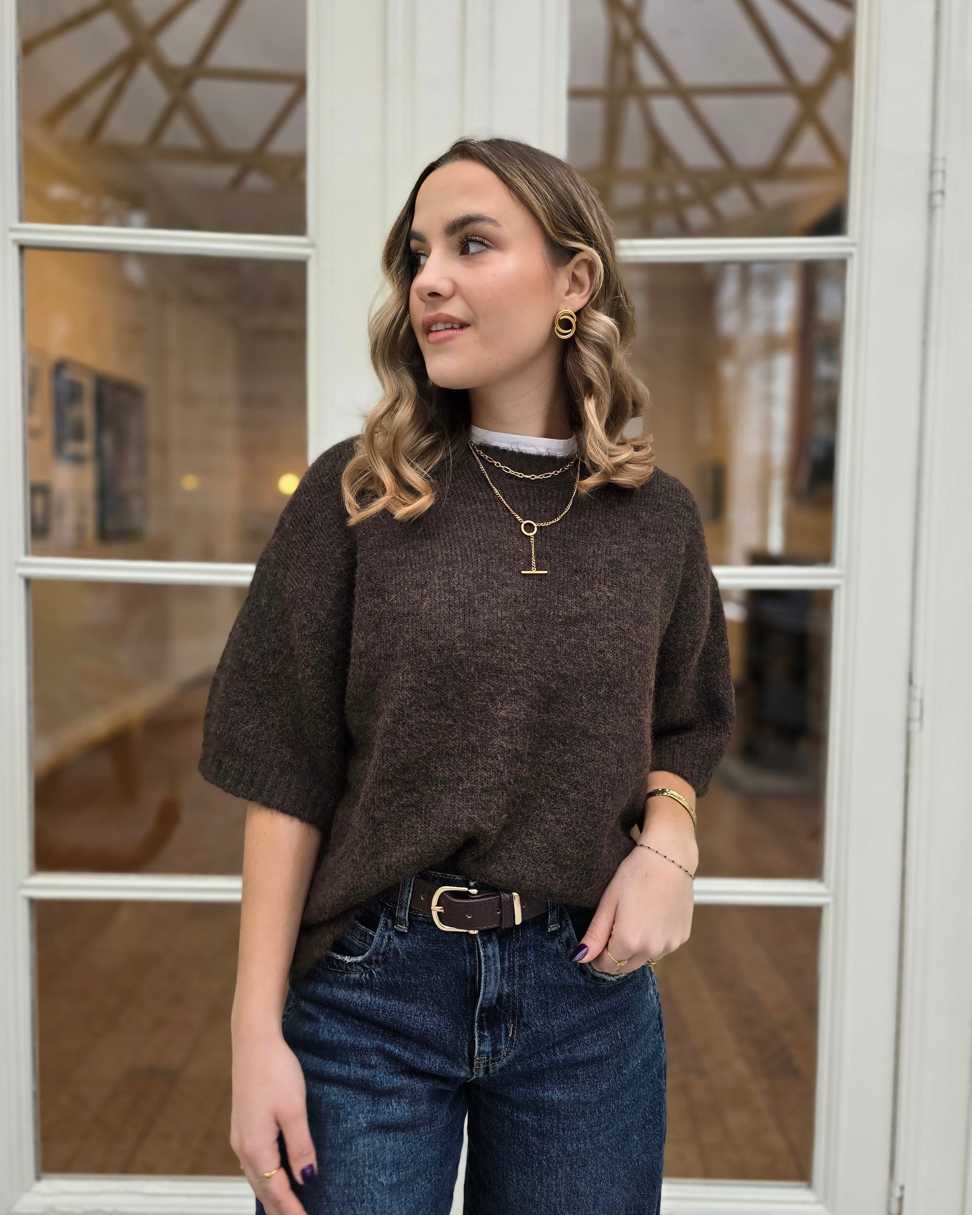 Le pull ÉLIA est une pièce essentielle au style minimal et élégant. Sa maille douce et légèrement structurée, associée à une coupe droite et des manches courtes, en fait un pull parfait pour des superpositions chic.