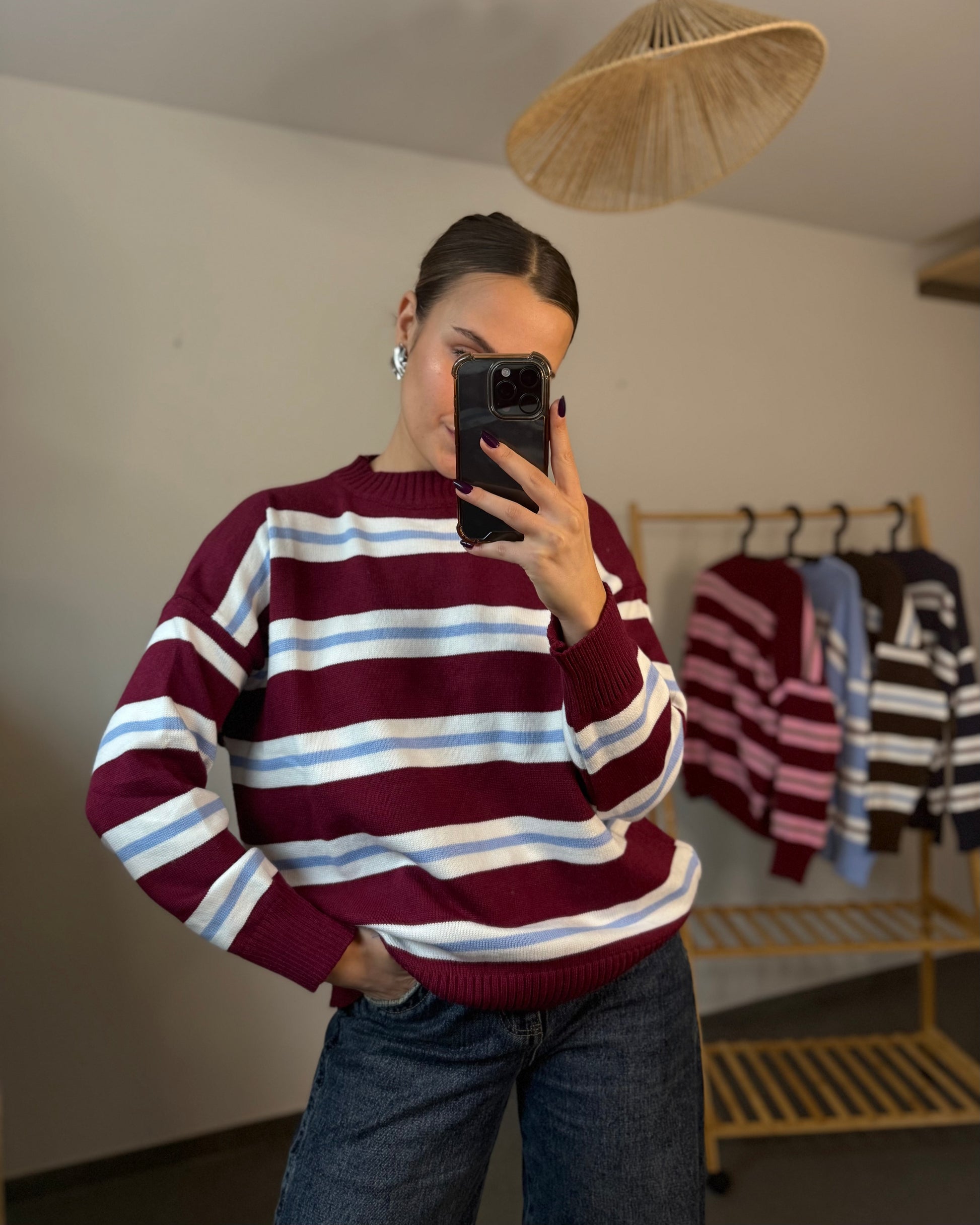 - Pull en maille douce à rayures horizontales