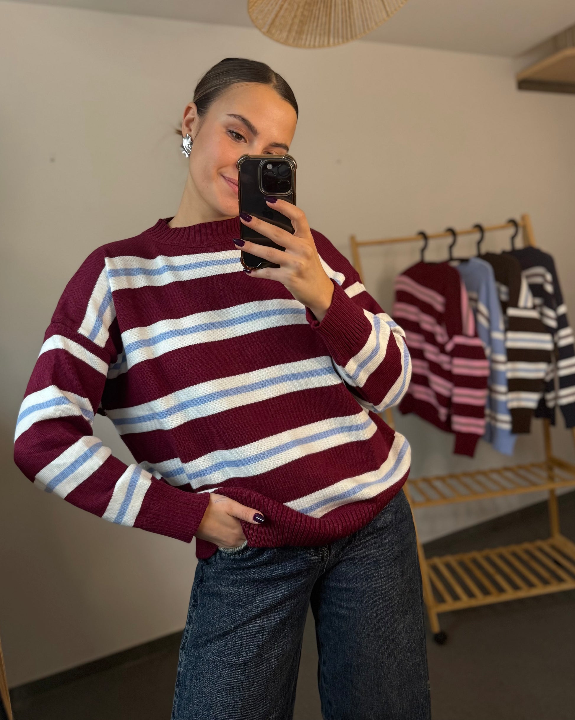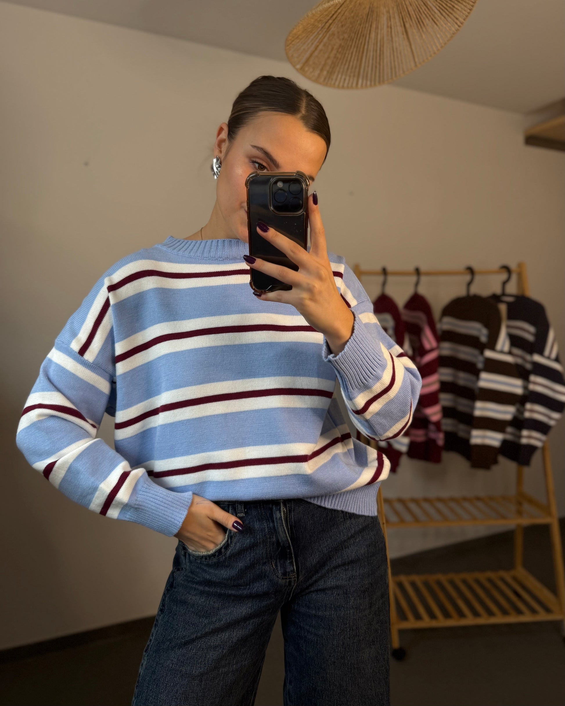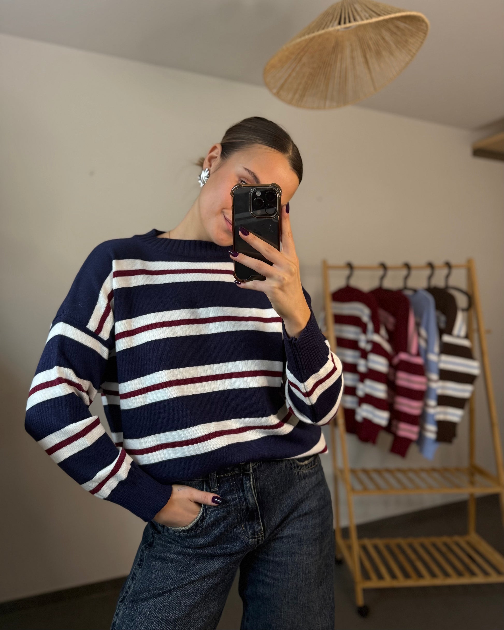 Le pull MILA est la pièce cosy et tendance qui apporte instantanément du style à une tenue. Sa coupe confortable, ses épaules légèrement descendues et ses rayures contrastées en font un essentiel du dressing automne-hiver. Facile à porter, il offre une allure décontractée mais toujours chic, fidèle à l’esthétique MUZE.