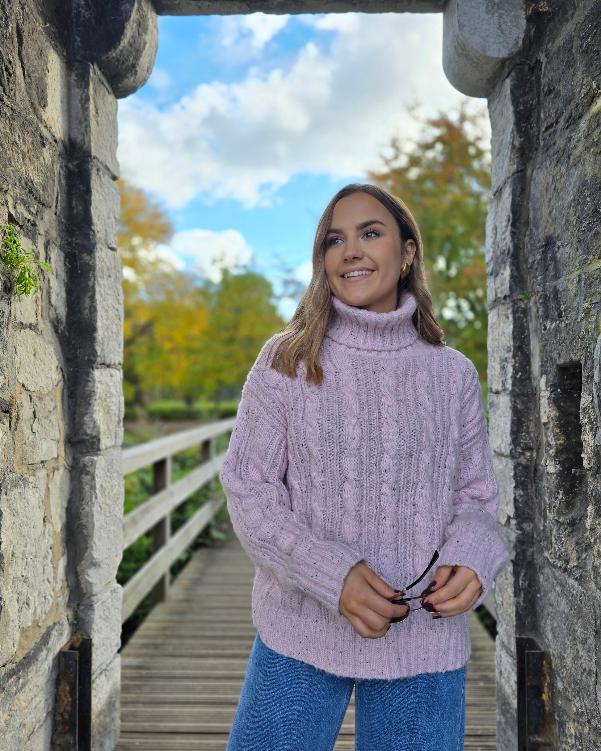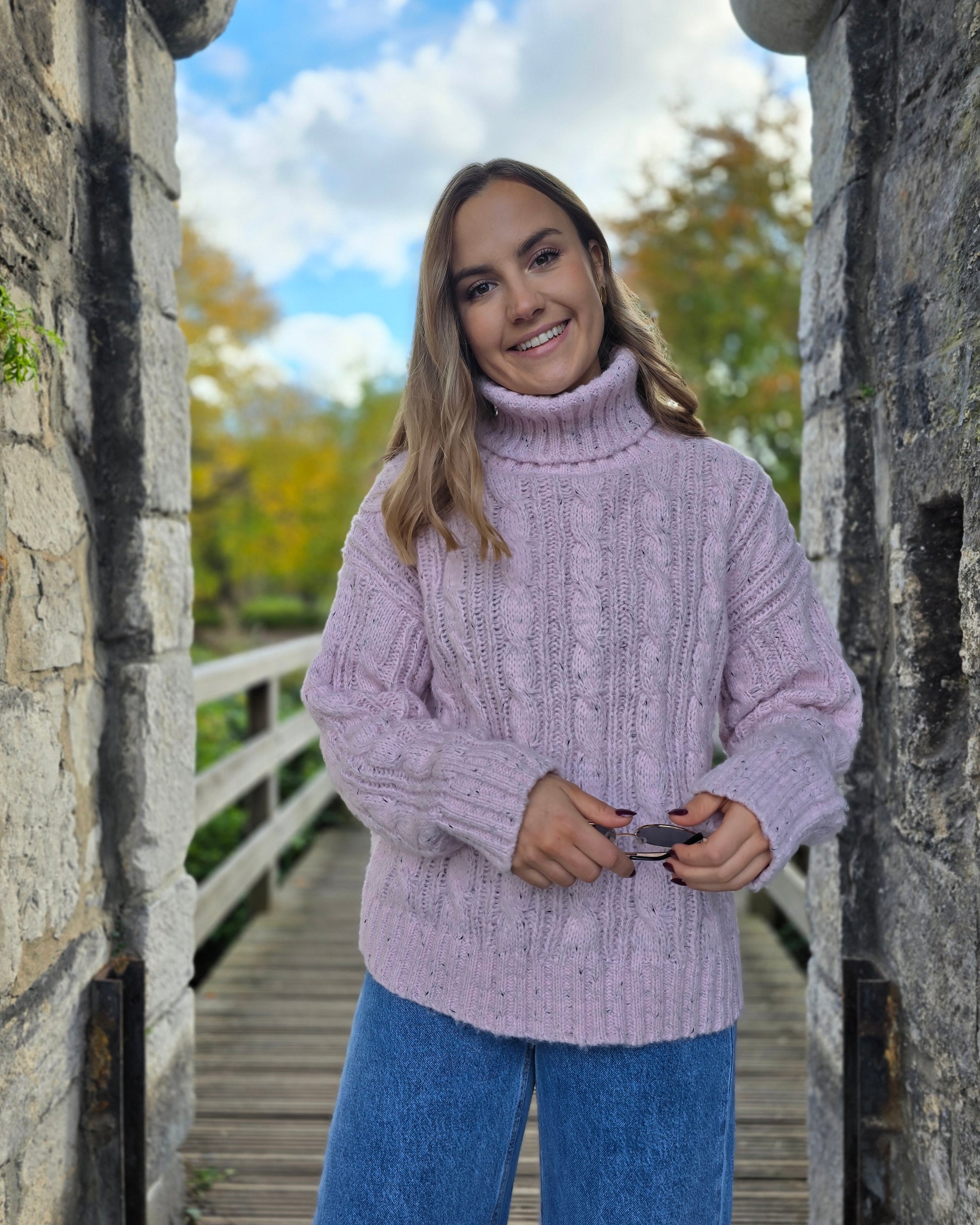 Le pull ROSA est un essentiel d’hiver à l’allure douce et réconfortante. Sa maille torsadée épaisse et son col roulé côtelé offrent chaleur et élégance, tandis que sa coupe légèrement ample ajoute une touche décontractée et moderne.