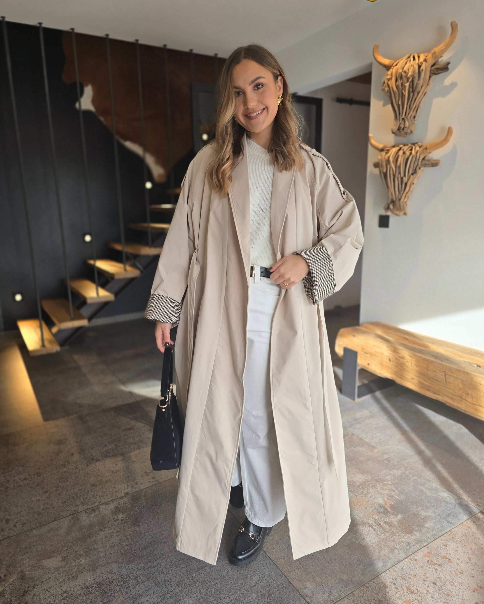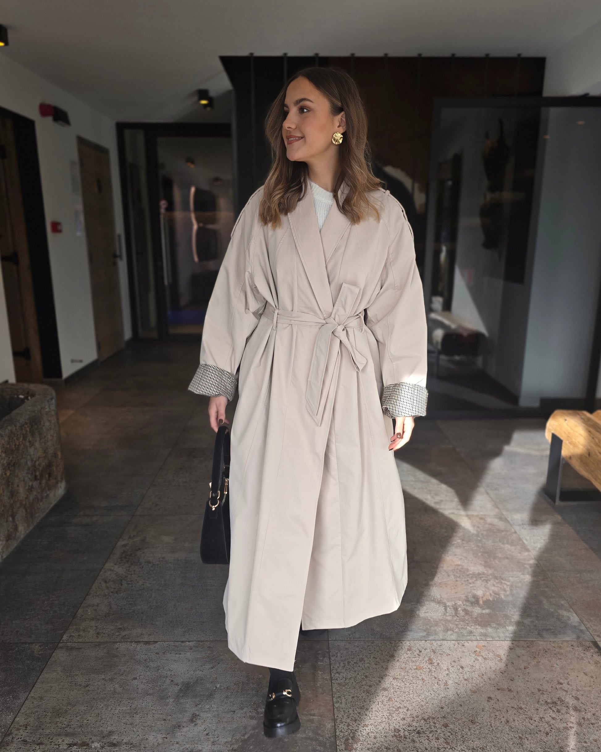 - Trench fluide à revers carreaux