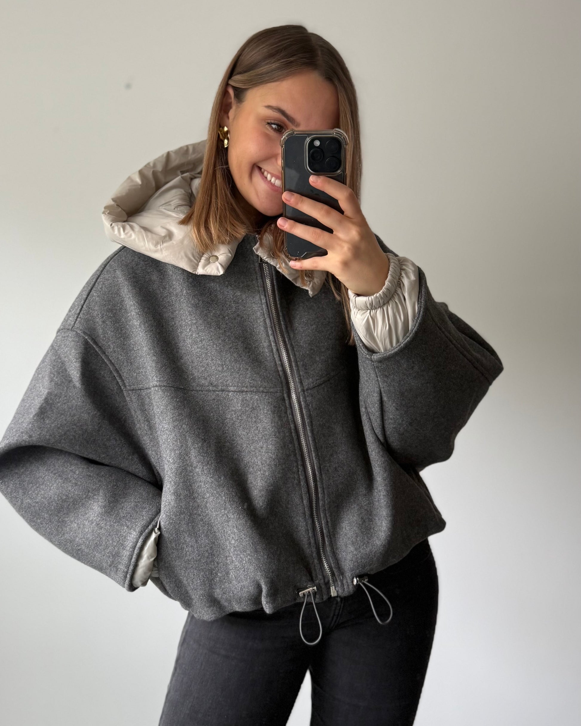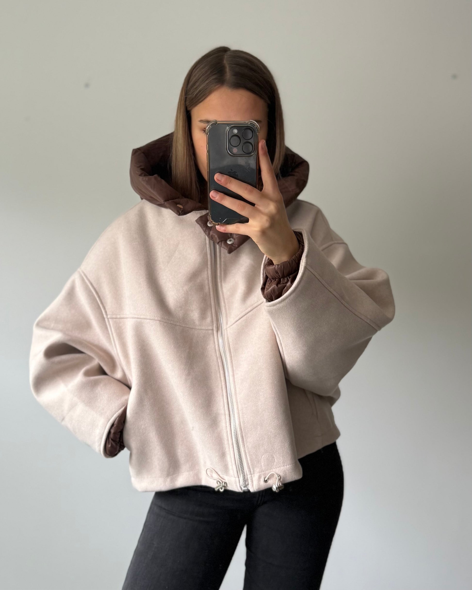 Élégante et chaleureuse, la veste CAPU allie confort et raffinement pour sublimer vos tenues d’hiver.Sa coupe courte et légèrement oversize crée une silhouette moderne et décontractée, tandis que sa capuche imperméable apporte une touche cocooning et pratique pour les jours de pluie.